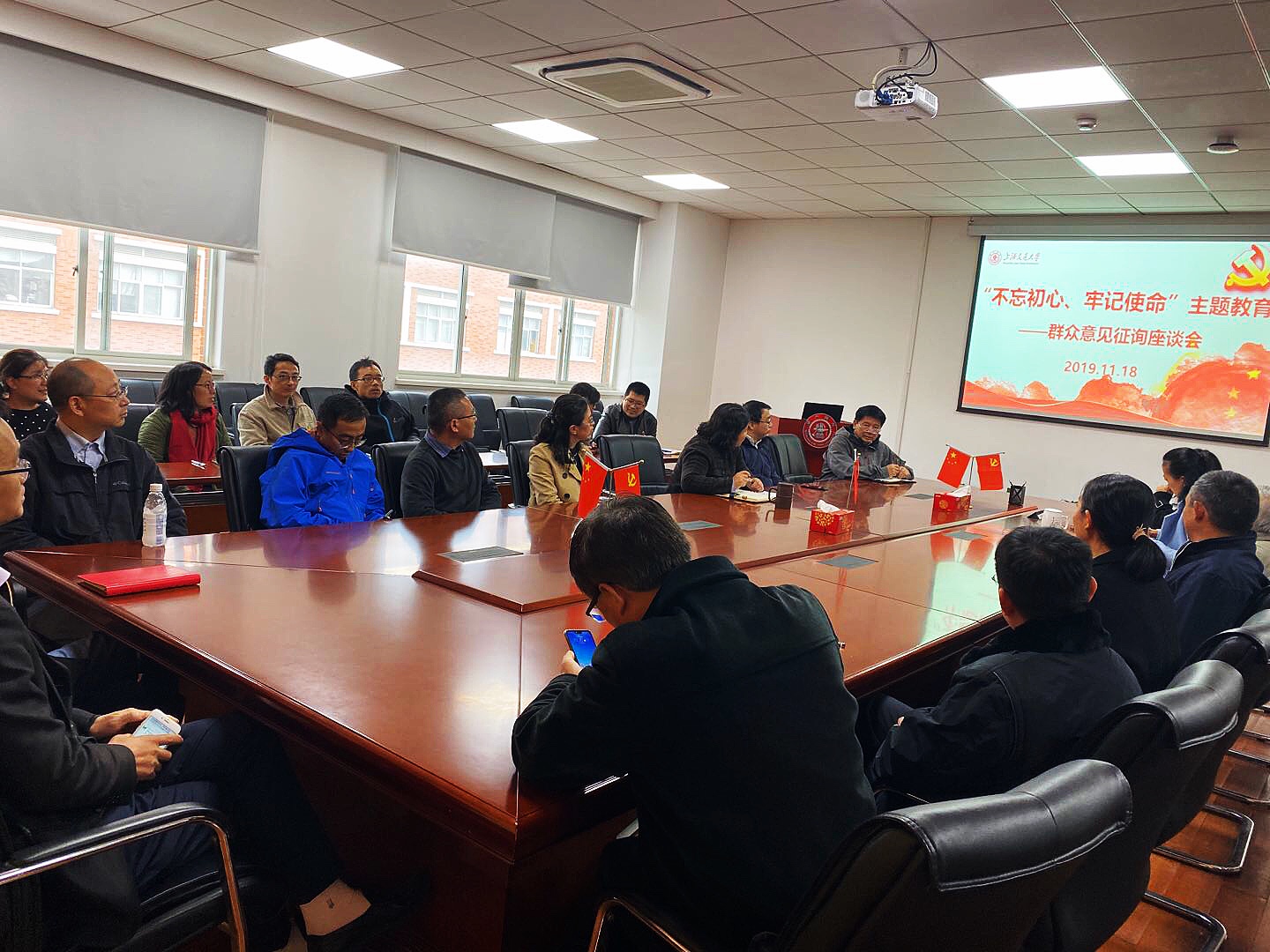 11月18日,yl23411永利集团官网在5-412会议室召开“不忘初心、牢记使命”主题教育领导班子意见征询会,听取对学院领导班子和班子成员的意见建议,进一步查找差距、整改落实,扎扎实实推进主题教育深入开展。学院三十余名教学、科研、管理教师代表参会,会议由院党委书记刘建新主持。