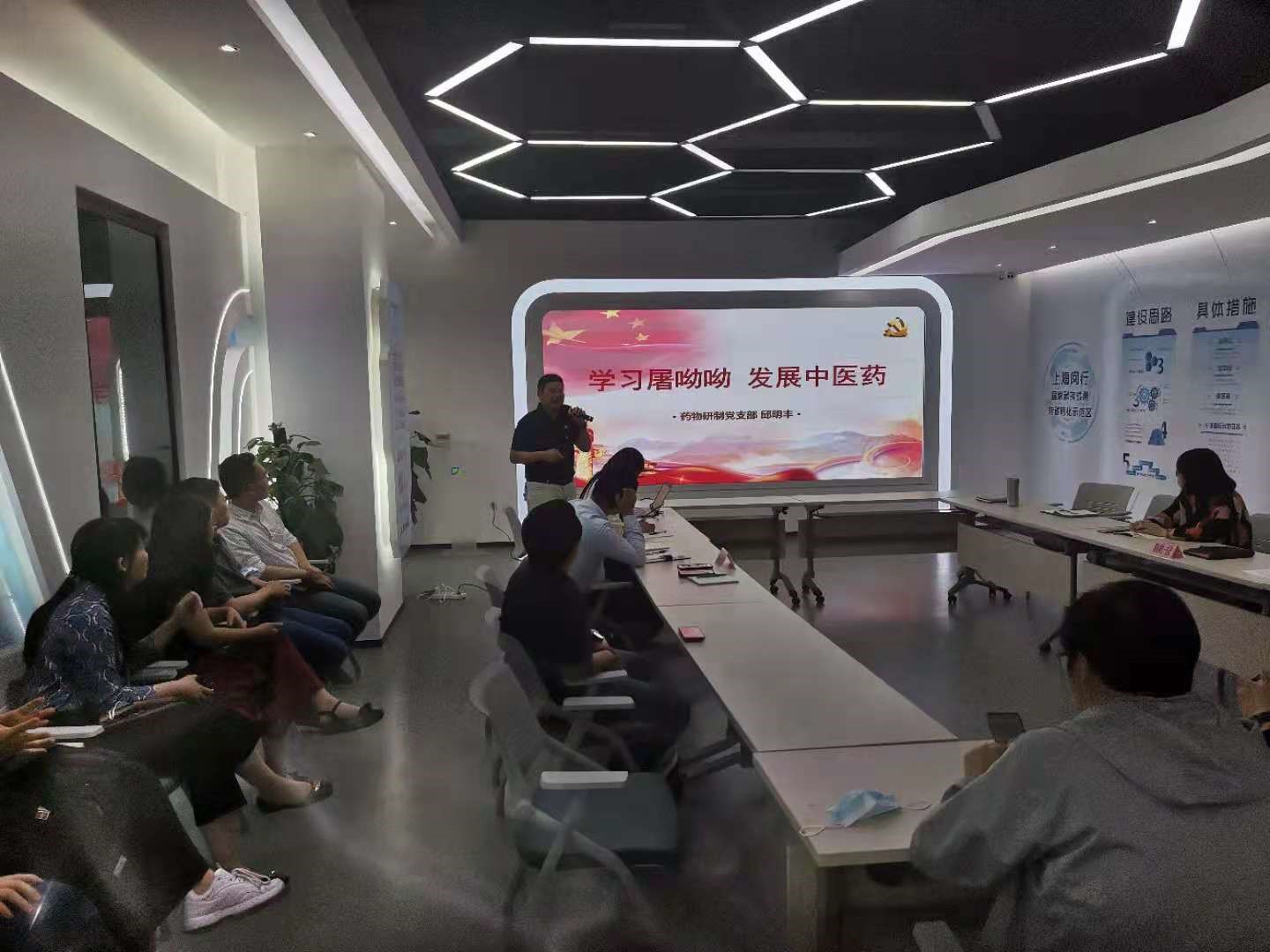活动在闵行区科创服务中心一楼大厅开展,科协事业单位第一党支部书记杨磊首先解读了闵行区关于推进科技创新创业成果转化政策意见的解读,期待永利集团官网成果尽早尽快落地闵行。随后永利集团官网药物研制党支部书记邱明丰介绍了支部总体情况,突出介绍了药物研制党支部的学科学术专业科技特色,分享了《学习屠呦呦 发展中医药》微党课,讲述了荣获诺奖、全国优秀党员屠呦呦研究员为战胜三大死亡疾病之一的疟疾,研制青蒿素所经历的艰苦岁月、所闪现的共产党员光芒与精神。最后,四个党支部一起学习了中国共产党的成立、讲述海南琼崖纵队雕塑《艰苦岁月》的党史微电影,并做了建党一百周年党史内心体验的深入交流。