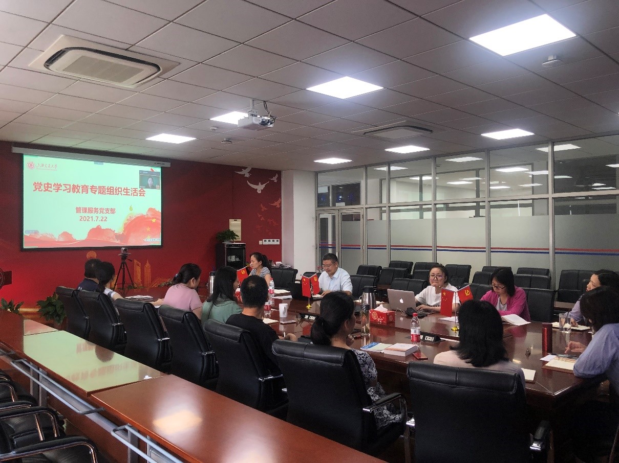 今年是中国共产党成立百年华诞,在学校深入开展党史学习教育之际,7月22日下午,yl23411永利集团官网管理服务党支部在生物药学5-412会议室组织召开党史学习教育专题组织生活会,会议采用线上+线下同步进行,支部全体党员参加会议。学院党委书记刘建新、副书记叶定剑以普通党员身份参加会议,党委委员、副院长邱明丰列席会议,会议由党支部书记李伟主持。