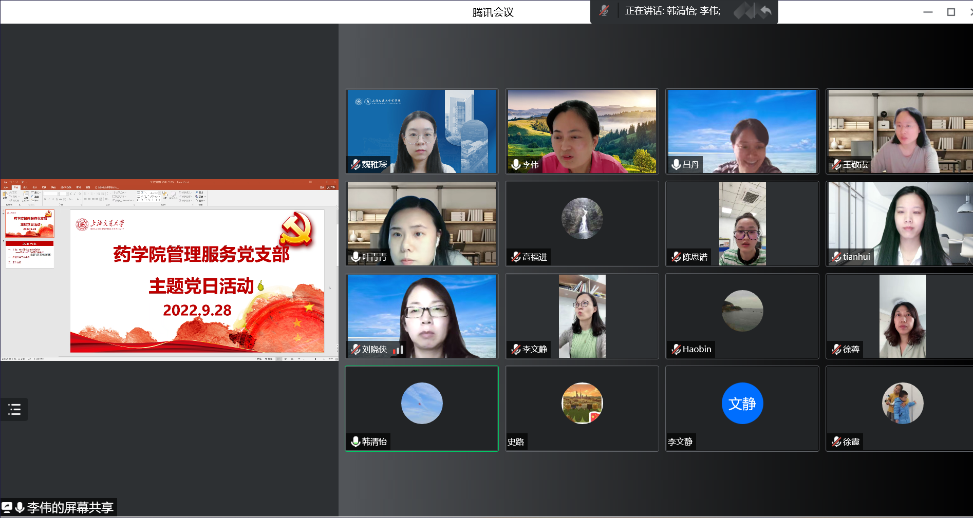 李伟向支部成员提示近期疫情防控工作的重点,支部成员结合各自工作岗位的实际情况进行交流讨论。