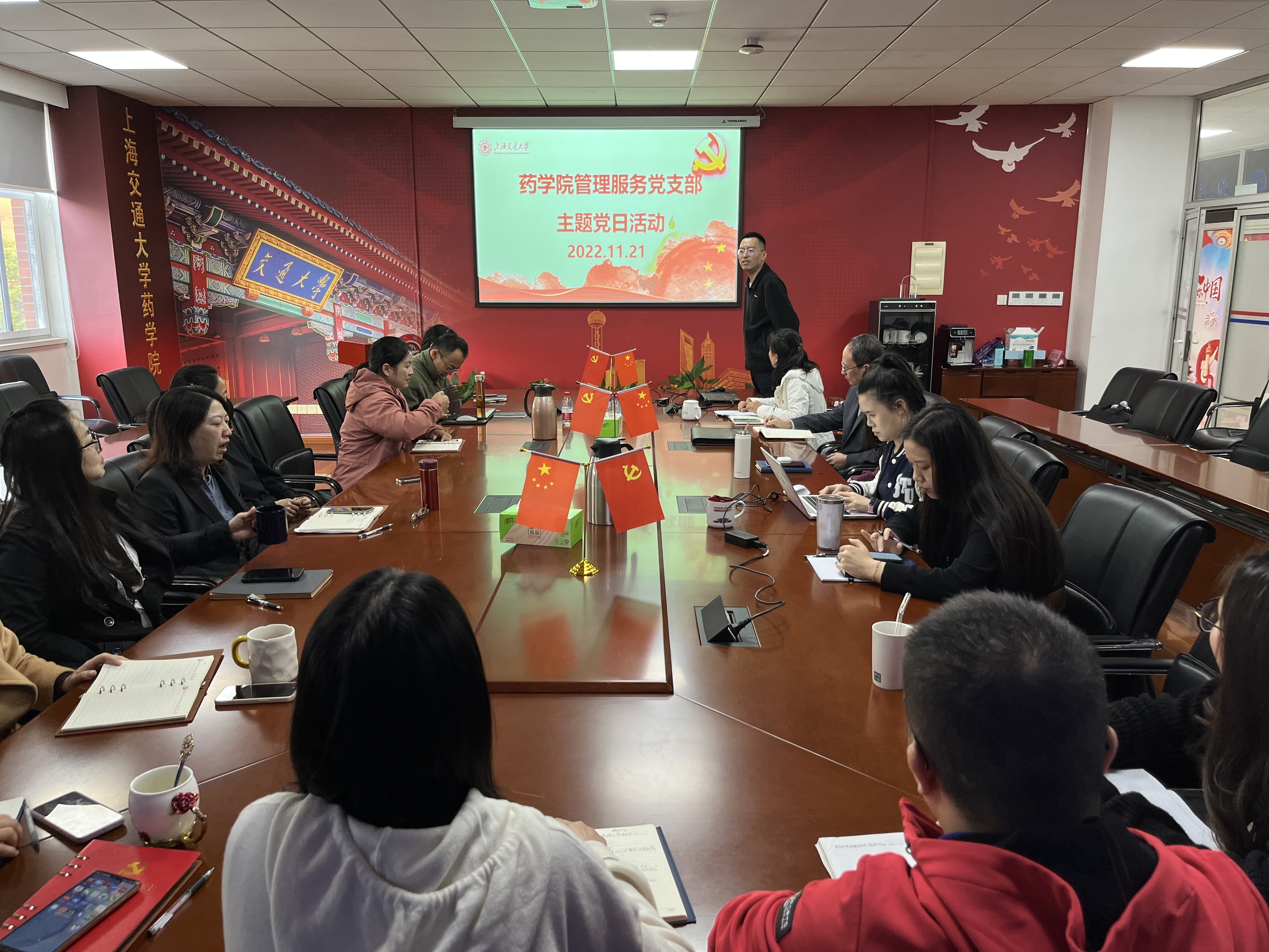 2022年11月21日下午,yl23411永利集团官网管理服务党支部开展主题党日活动。院党委书记刘建新以普通党员身份参加了本次活动,副院长钱峰列席本次活动,活动由支部书记李伟主持。
