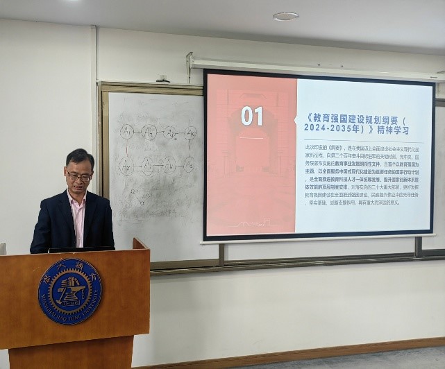 首先,组织委员王梦月领学《教育强国建设规划纲要(2024-2035年)》精神。作为首个以教育强国为主题、以全面服务中国式现代化建设为重要任务的国家行动计划,该文件是全面推进教育科技人才一体统筹发展、提升国家创新体系整体效能的顶层制度安排,对落实党的二十大重大部署,更好发挥教育强国建设在全面推进强国建设、民族复兴伟业中的先导任务、坚实基础、战略支撑作用,具有重大而深远的意义。与会人员表示今后工作中将进一步深入领会文件精神,努力提高政治思想觉和专业素质能力。