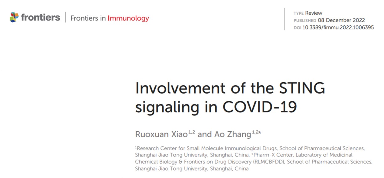 2022年12月8日,yl23411永利集团官网张翱教授课题组在Frontiers in immunology上发表了题为“Involvement of the STING signaling in COVID-19”的综述文章,对目前已报道的SARS-CoV-2和STING信号通路间的联系进行了总结,讨论了病毒蛋白对STING通路的拮抗机制以及宿主细胞对STING通路的激活作用,强调了SARS-CoV-2感染过程中STING持续激活导致的炎症异常,总结了STING激动剂对SARS-CoV-2的抗病毒作用,以及STING激动剂作为疫苗佐剂在新冠疫苗研发中的潜在应用价值。