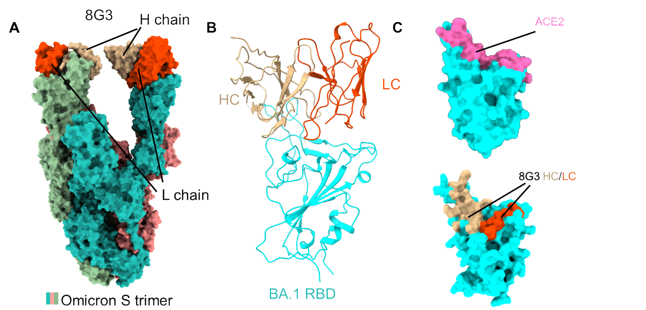 图2 抗体8G3和Omicron BA.1三聚体冷冻电镜结构