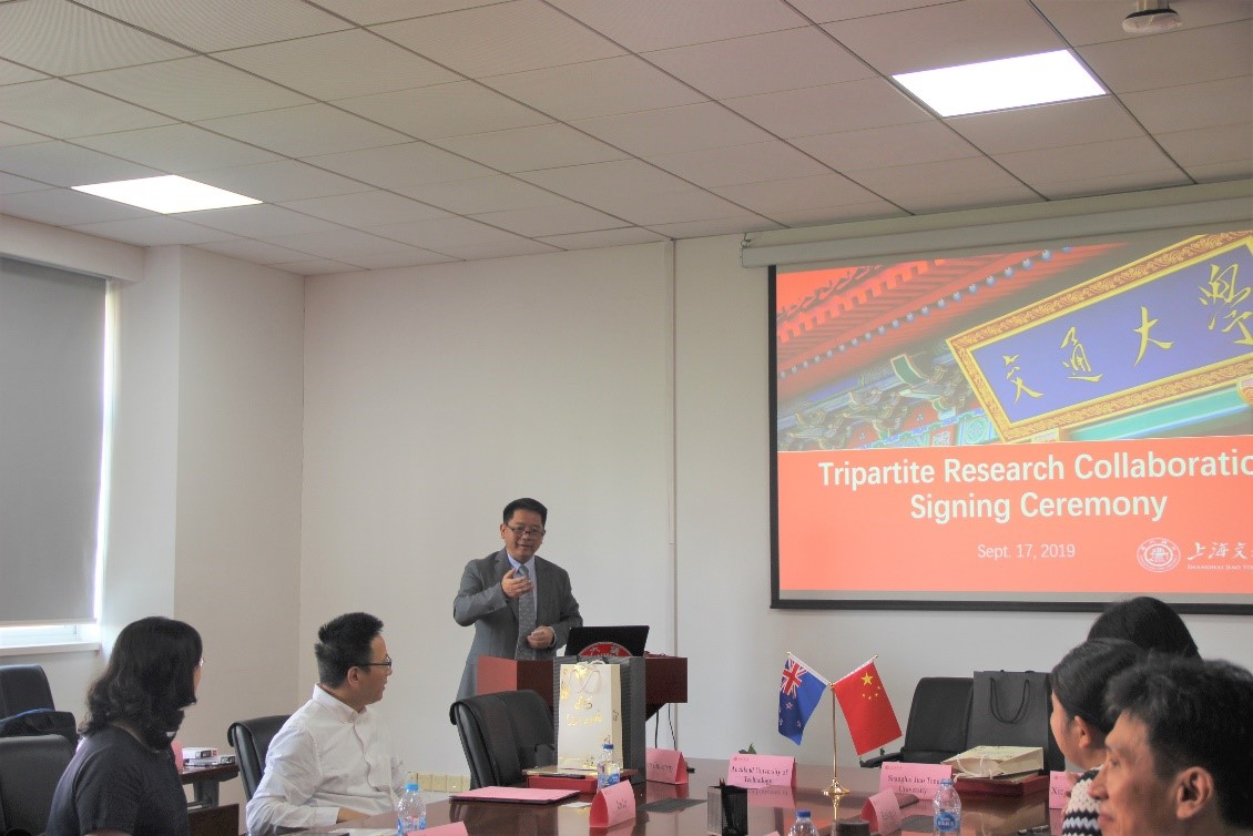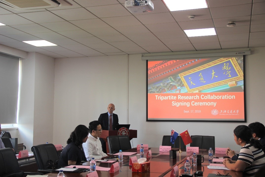 Andrew Robinson对上海交大和yl23411永利集团官网的热情接待表示感谢。他说,中国是新西兰全球五大研究合作伙伴之一,他们认识到中国一直致力于加强东部和西部地区合作与发展,他们也在积极寻找新西兰可以参与其中的机遇。该协议的签订正体现了新西兰与中国在科学研究领域的联系。奥克兰理工大学与上海交大、复旦大学、新疆大学的合作将跨越生物医学、心理学、心理健康、公共卫生、食品科学等医药卫生研究领域,为四所大学今后更进一步的交流开辟了新的篇章。