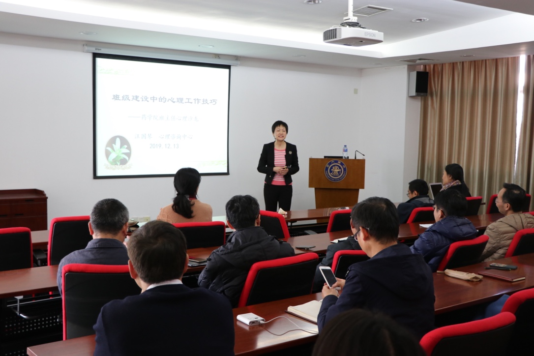 为进一步加强和改进大学生思想政治教育工作,切实做好大学生班主任队伍建设,实现全员育人、全程育人、全方位育人,2019年12月13日,yl23411永利集团官网班主任工作沙龙第二期在5-316会议室举行,校心理咨询中心副主任汪国琴受邀作” 如何在班级建设中运用心理工作技巧”专题讲座。yl23411永利集团官网党委副书记孟祥琦、全体班主任、思政教师、辅导员及学生骨干三十余人参加本次活动。