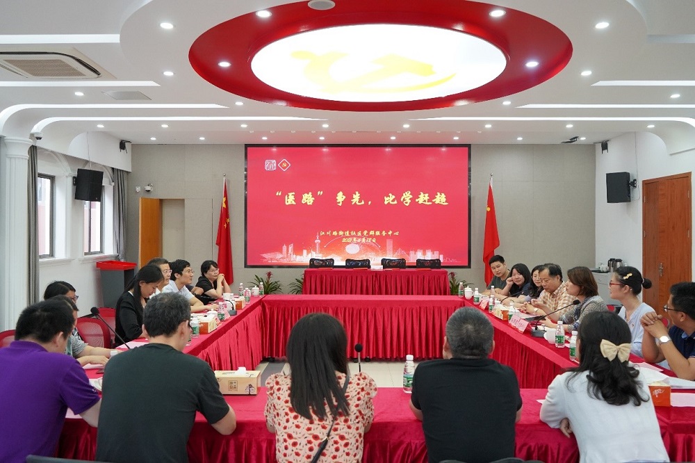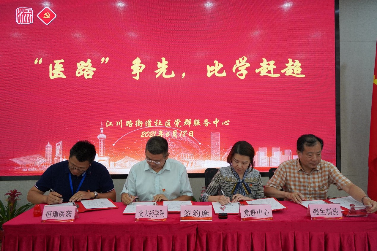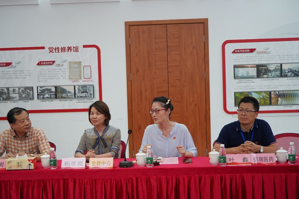 习近平同志在党的十九大报告中强调:“伟大斗争,伟大工程,伟大事业,伟大梦想,紧密联系、相互贯通、相互作用,其中起决定性作用的是党的建设新的伟大工程。推进伟大工程,要结合伟大斗争、伟大事业、伟大梦想的实践来进行”。为践行习近平总书记这一重要论述,药物研制党支部将党建与中心工作深度融合到一起。6月18日下午,yl23411永利集团官网药物研制党支部在江川路街道社区党群服务中心与江川路街道社区党群服务中心党支部(以下简称江川路街道党支部)、上海市恒瑞医药有限公司党总支(以下简称恒瑞医药党总支)、上海强生制药有限公司党支部(以下简称强生制药党总支)联合开展生物医药支部共建活动。