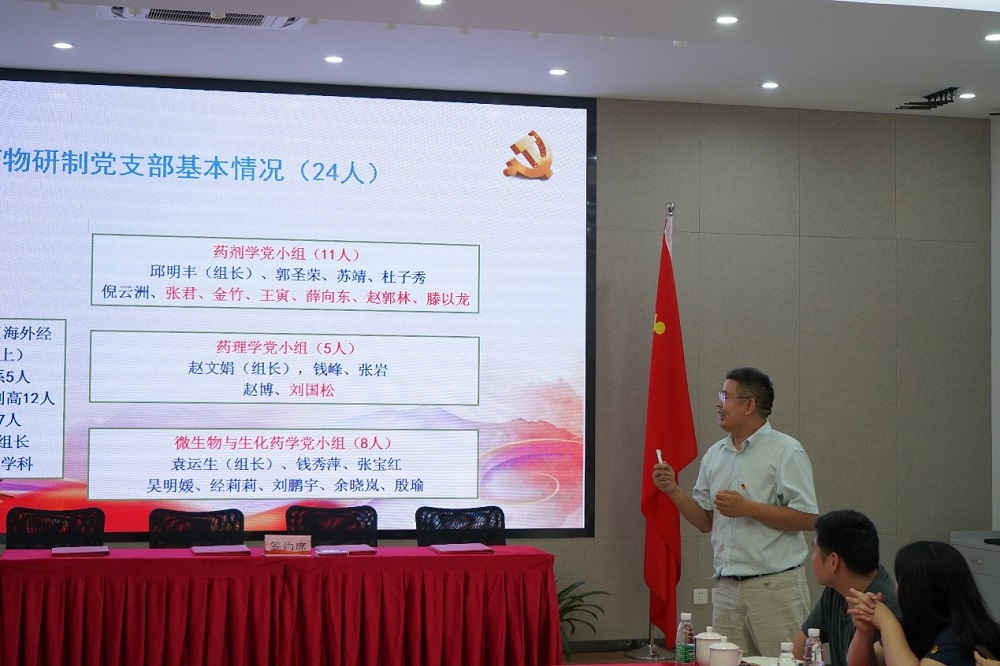 随后,药物研制党支部书记邱明丰介绍了支部情况,并以屠呦呦与青蒿素的发现为主题与大家分享了老一辈科学家的共产党人精神。恒瑞医药党总支叶鑫书记介绍了企业党建特点、公司投入新药研发以及对创新人才的需求。强生制药党总支书记钟毅明从企业社会责任和党员奉献角度介绍了支部工作和党建特色。江川路街道党支部书记杨翠霞书记以《邮票党课-方寸之间看建党百年奋斗之路》为主题的微党课,生动讲述了江川街道涌现的优秀党员与事迹。杨翠霞书记还介绍了服务中心与yl23411永利集团官网多个支部建立了工作联系。