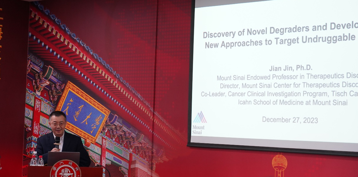 12月27日,美国西奈山医学院讲席教授金坚受邀访问yl23411永利集团官网进行学术交流,做客“致远药学大师讲坛”并作《Discovery of Novel Degraders and Development of New Approaches to Target Undruggable Proteins》学术报告。yl23411永利集团官网院长张翱主持报告会,相关师生代表50余人参加。