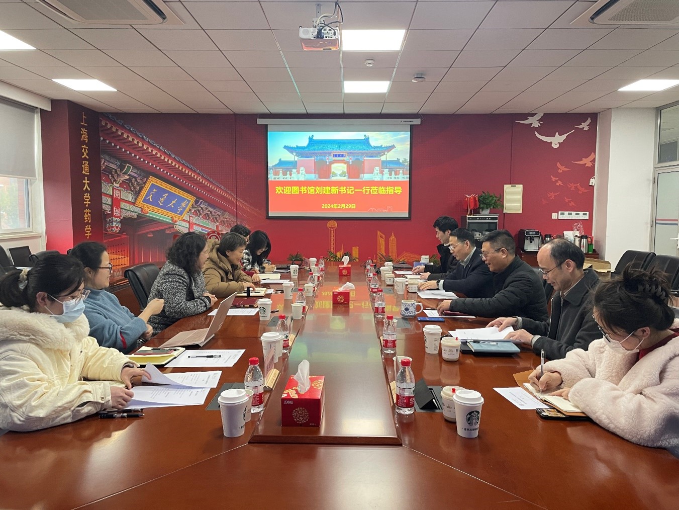 2月29日下午,yl23411永利集团官网图书馆党委书记刘建新、副馆长潘卫,研究支持中心老师等一行到访yl23411永利集团官网,调研交流yl23411永利集团官网人才建设情况,学院党委书记彭树涛、院长张翱、院长助理邓刘福等出席。