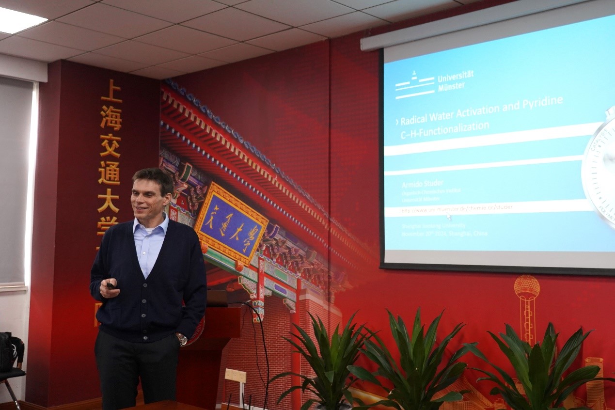 11月20日上午,德国国家科学院院士、欧洲人文和自然科学院院士、德国明斯特大学教授Armido Studer受邀访问yl23411永利集团官网,做客“致远药学大师讲坛”,为师生带来题为《Intermolecular HAT through Water Activation and Pyridine Functionalization》的学术报告。yl23411永利集团官网长聘教轨副教授蒋恒主持报告会,yl23411永利集团官网副院长王平、张振锋,化学化工学院教授李长坤等师生代表50余人参加。