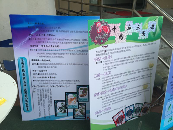 我们yl23411永利集团官网的志愿者们带来了精心准备的“你所不知道的甄嬛传”,“中药与三国杀”等活动。“你所不知道的甄嬛传”是选取甄嬛传中涉及的中药知识,给大家进行讲解和辟谣。现在还准备了甄嬛传涉及的中药知识竞猜,回答正确的同学获得各式各样的养生花茶。“中药与三国杀”则是将中医药里的“君药”、“臣药”、“佐药”和“使药”和三国杀的角色相联系,在游戏中了解各个品种的中药材和中医药的一些基本理念。这些游戏寓教于乐,增加同学们对中医药文化的兴趣,在游戏中普及中医药知识。